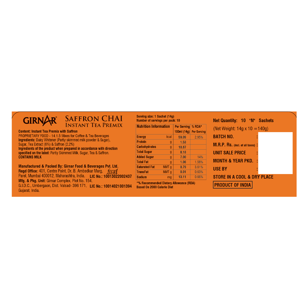 All this without the brewing wait. Or numerous ingredients to accumulate. Girnar’s Saffron Chai Premix is ready before you contemplate!